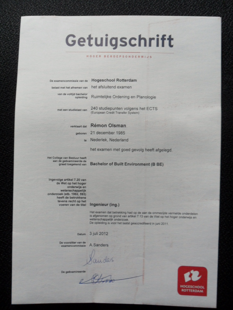 Sinds vandaag heb ik voor al mijn (inhaal-)vakken de benodigde punten gescoord en hierbij ben ik dan ook geslaagd!